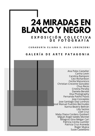 “24 Miradas en Blanco y Negro” es una exposición internacional de fotografía abstracta en blanco y negro que reúne a artistas de España, Argentina, Ecuador, Chile, Bolivia, Colombia, Cuba, Uruguay, Perú, Brasil y México. La muestra propone un recorrido visual donde la forma, la textura, la luz y el contraste se convierten en los verdaderos protagonistas, desplazando la representación literal para abrir paso a una experiencia perceptiva y sensorial.
